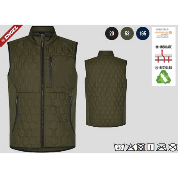 Material: 100% gestepptes Polyester (recycelt), 75 g/m2, leichte Steppweste, kombiniert mit Softshell,