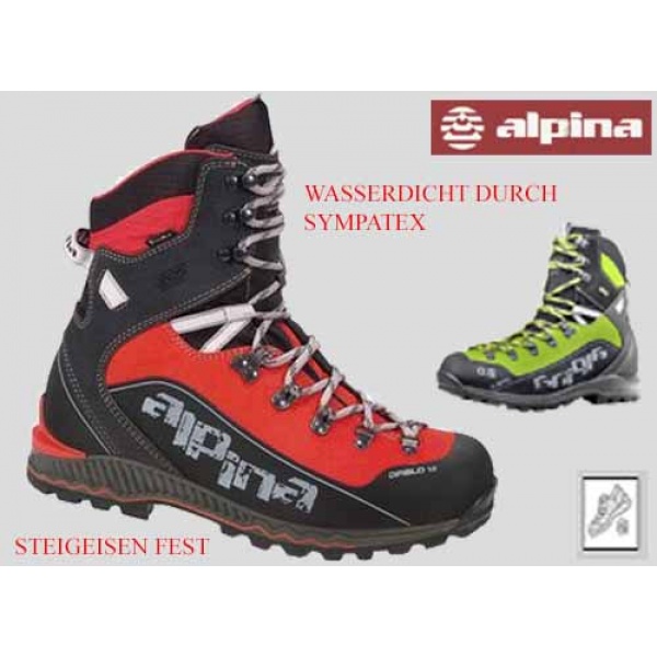 Diablo, grün/schwarz, Diablo, rot/schwarz, Obermaterial: Nubukleder, Futter: Textil, Sohle: Vibram, PU-Zwischenkeil, Extras: Sympatex, steigeisenfest, Wettschutzrand, lieferbare Grössen: 6,5 - 14