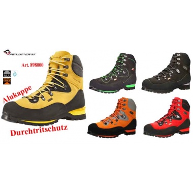 Extras: Sehr leichter Sicherheits-Gebirgsschuh, lieferbare Farben: gelb/schwarz, rot/schwarz, orange/schwarz, grün/schwarz, schwarz,