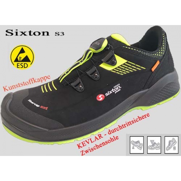 ESD-Sicherheitshalbschuh SIXTON mit textiler Zwischensohle und D3O-Dämpfungseinlage.